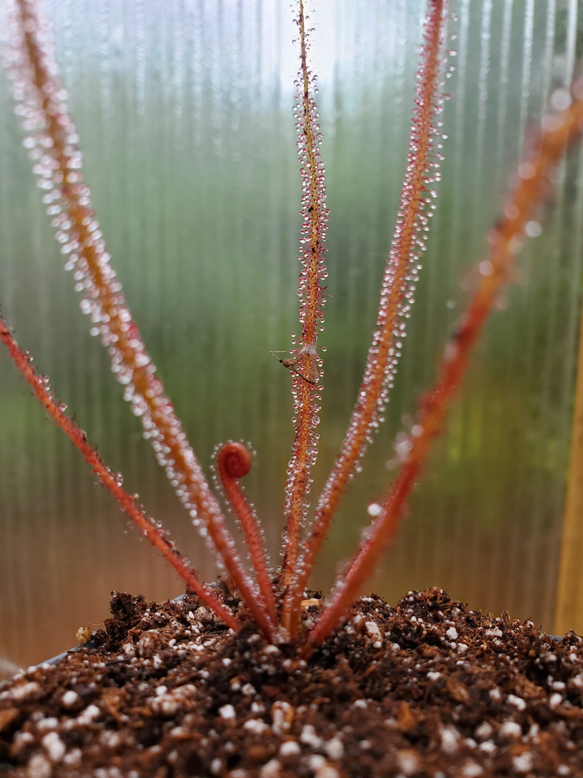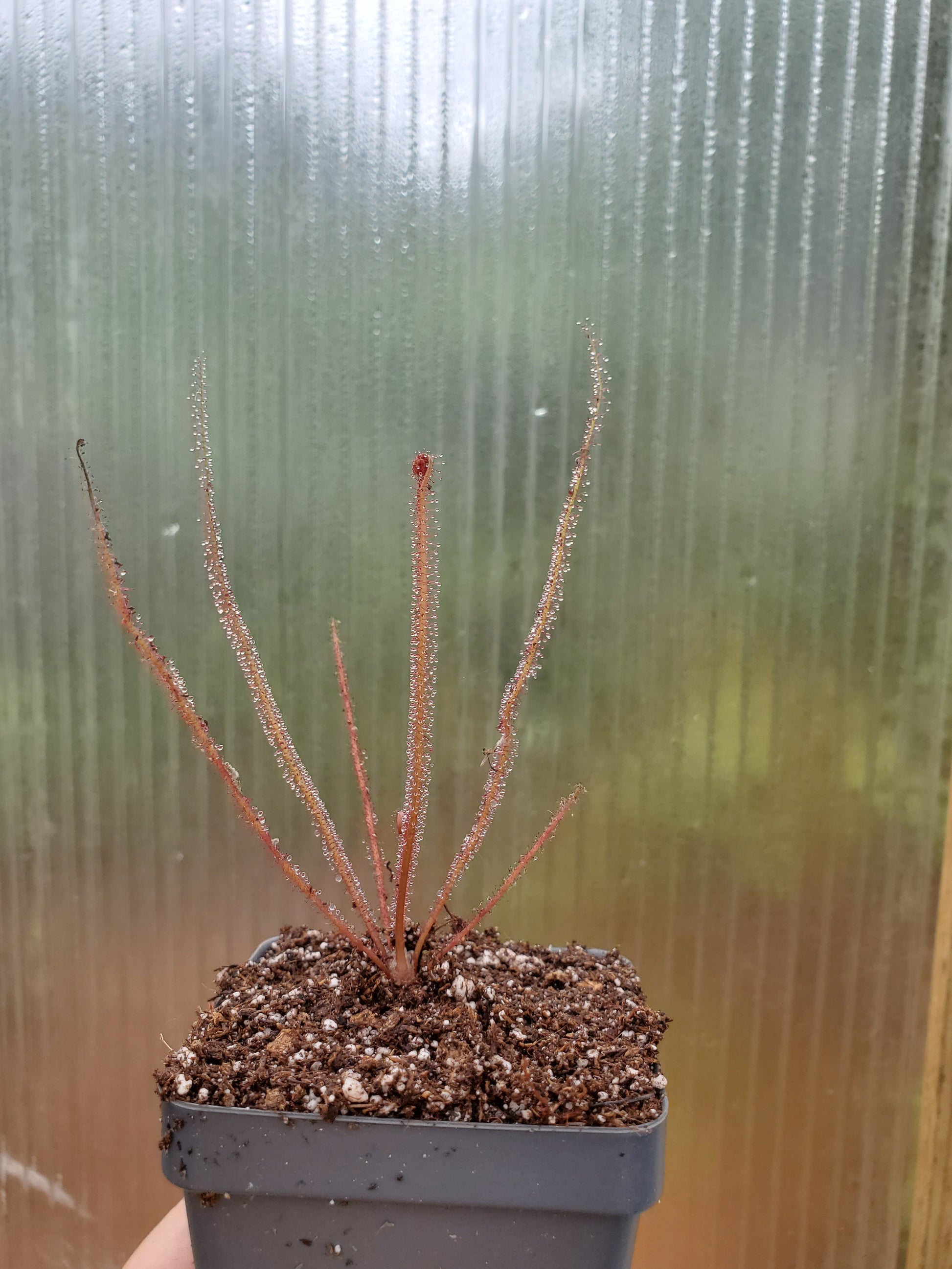 Drosera filiformis 'Florida Red', Thread leaf sundew, live carnivorous plant, potted